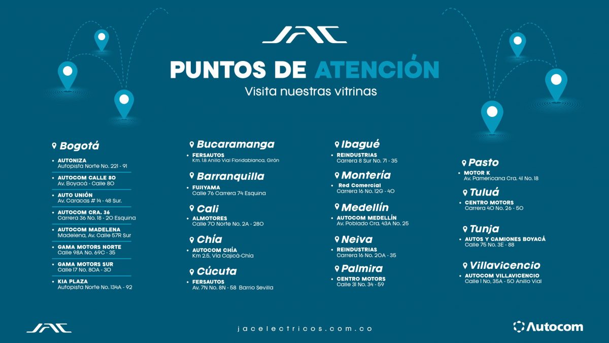 Encuentra la vitrina que más te convenga a nivel nacional para conocer nuestros productos JAC eléctricos